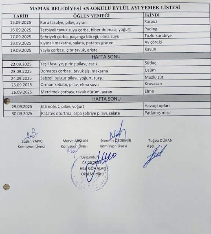 EYLÜL KULÜP YEMEK LİSTESİ
